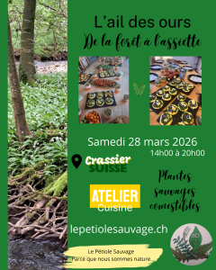 Cette journée sera l’occasion parfaite de combiner plaisir de la découverte et joie de cuisiner ensemble, tout en apprenant à respecter et apprécier les richesses que nous offre notre environnement. Prêts à vous régaler et à vous initier à la cuisine sauvage ? Rejoignez-nous pour cette aventure culinaire unique !