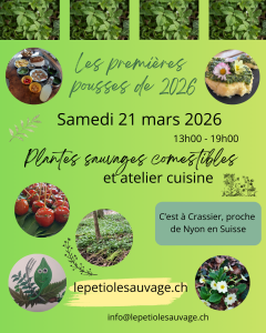 Venez vivre une expérience unique autour des plantes sauvages comestibles et médicinales lors de l’activité « Les premières pousses de 2026 » ! Nous vous donnons rendez-vous le samedi 21 mars 2026, de 13h à 19h, à Crassier, pour une journée conviviale et enrichissante accessible à tous les curieux de nature et de cuisine.